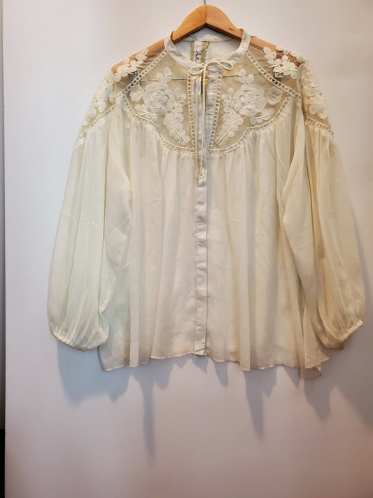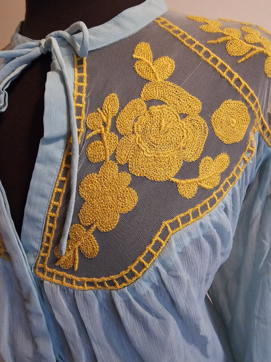 CAMELLIA TEAL TOP WITH YELLOW EMBROIDERY
