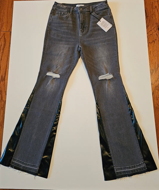 HIGH RISE GREY FLARE JEANS WITH VEGAN FLARE PANNELS