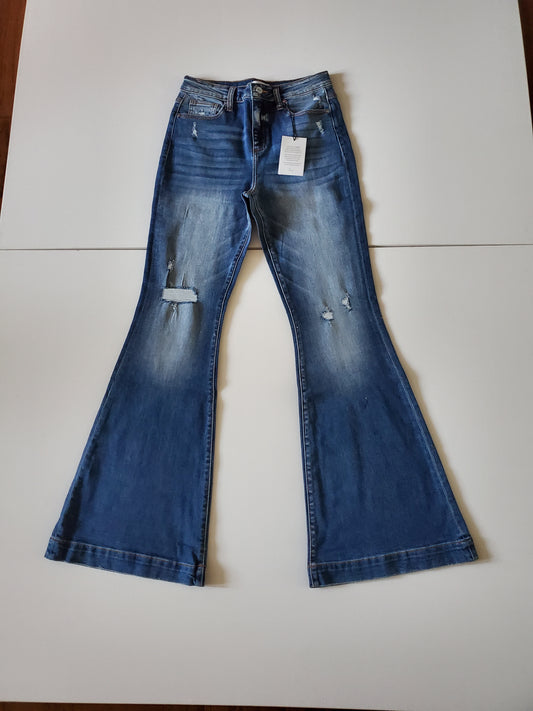 HIGH RISE FLARE MEDIUM BLUE WASH JEANS