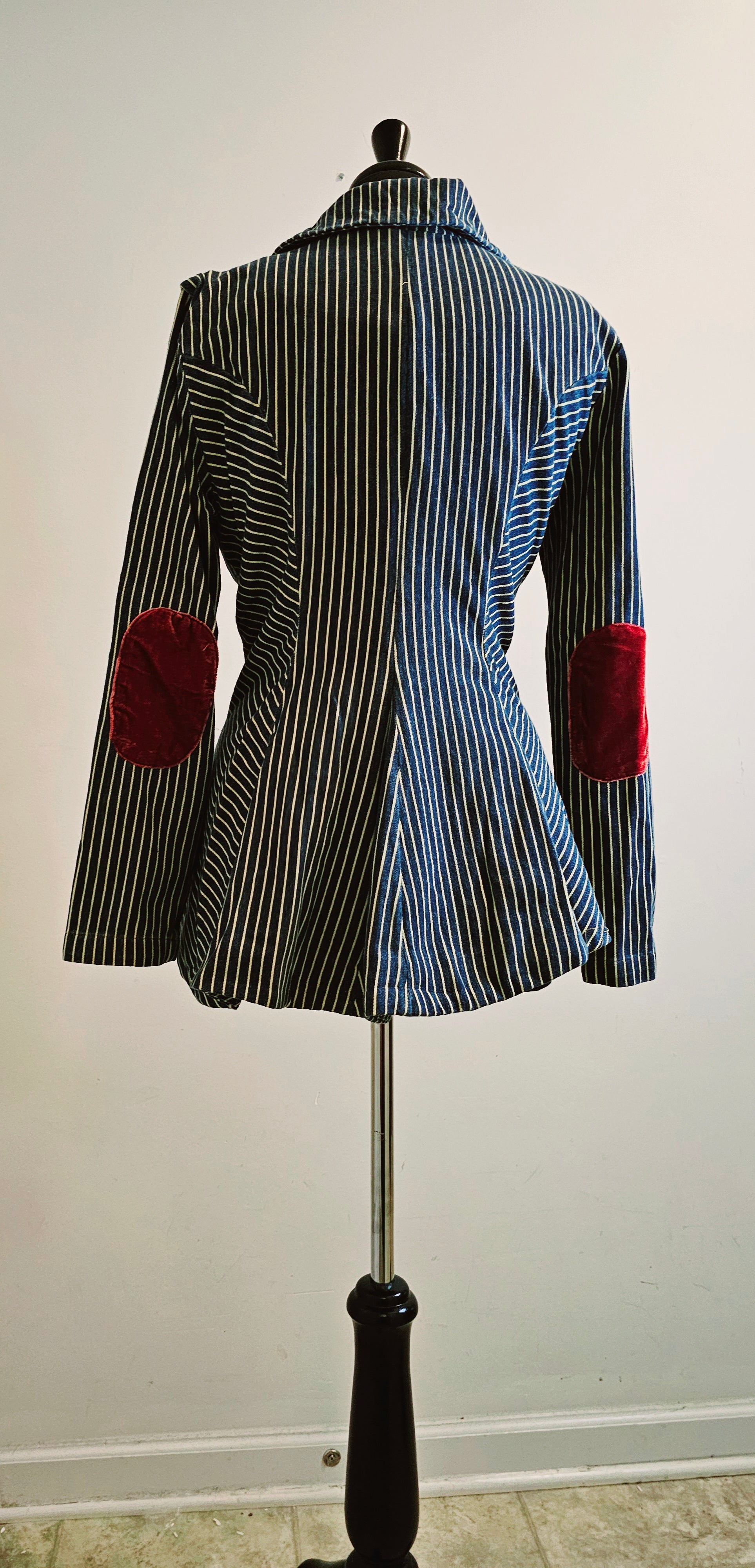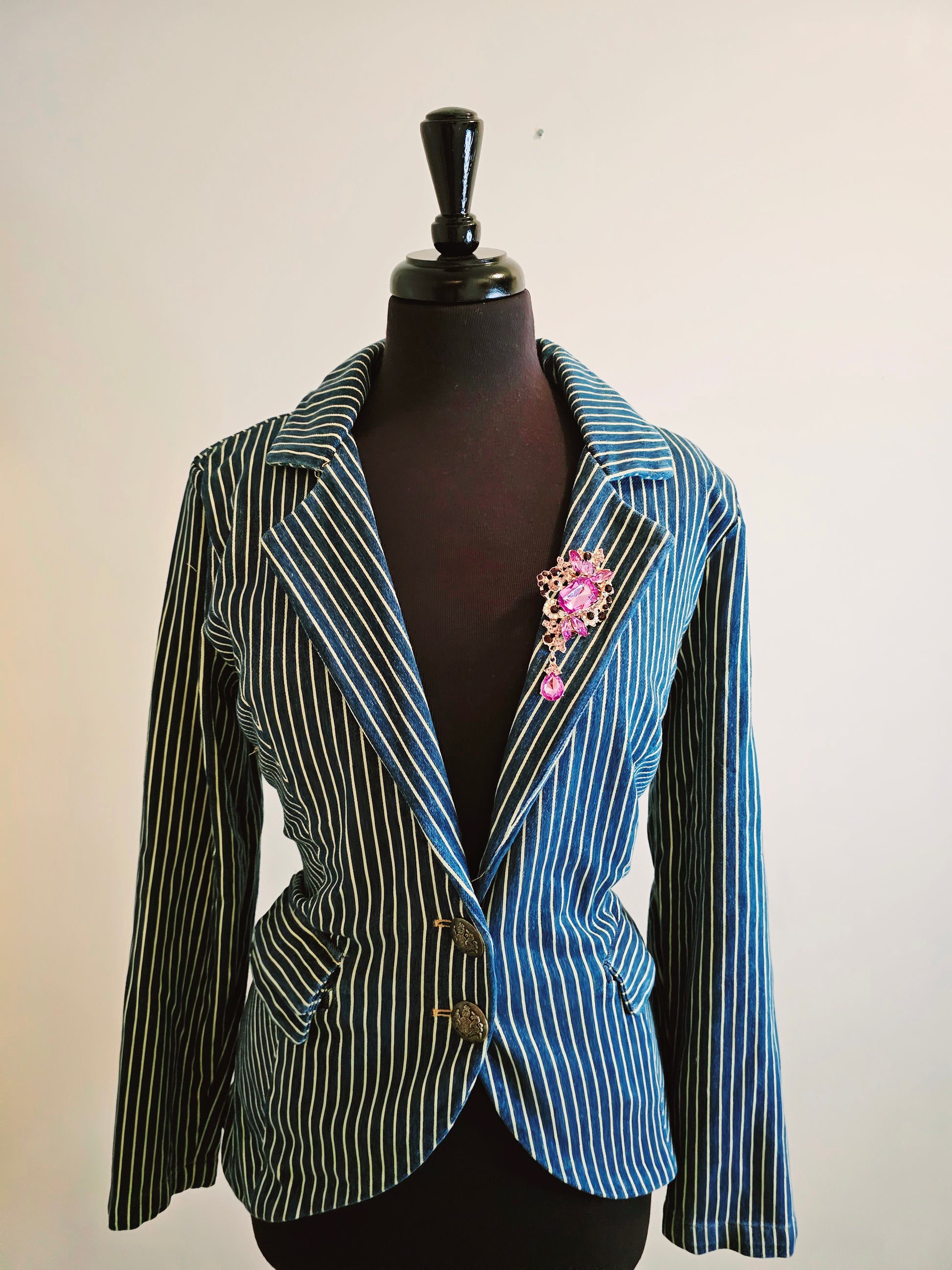 STRIPE DENIM BUTTON-UP LINED BLAZER WITH