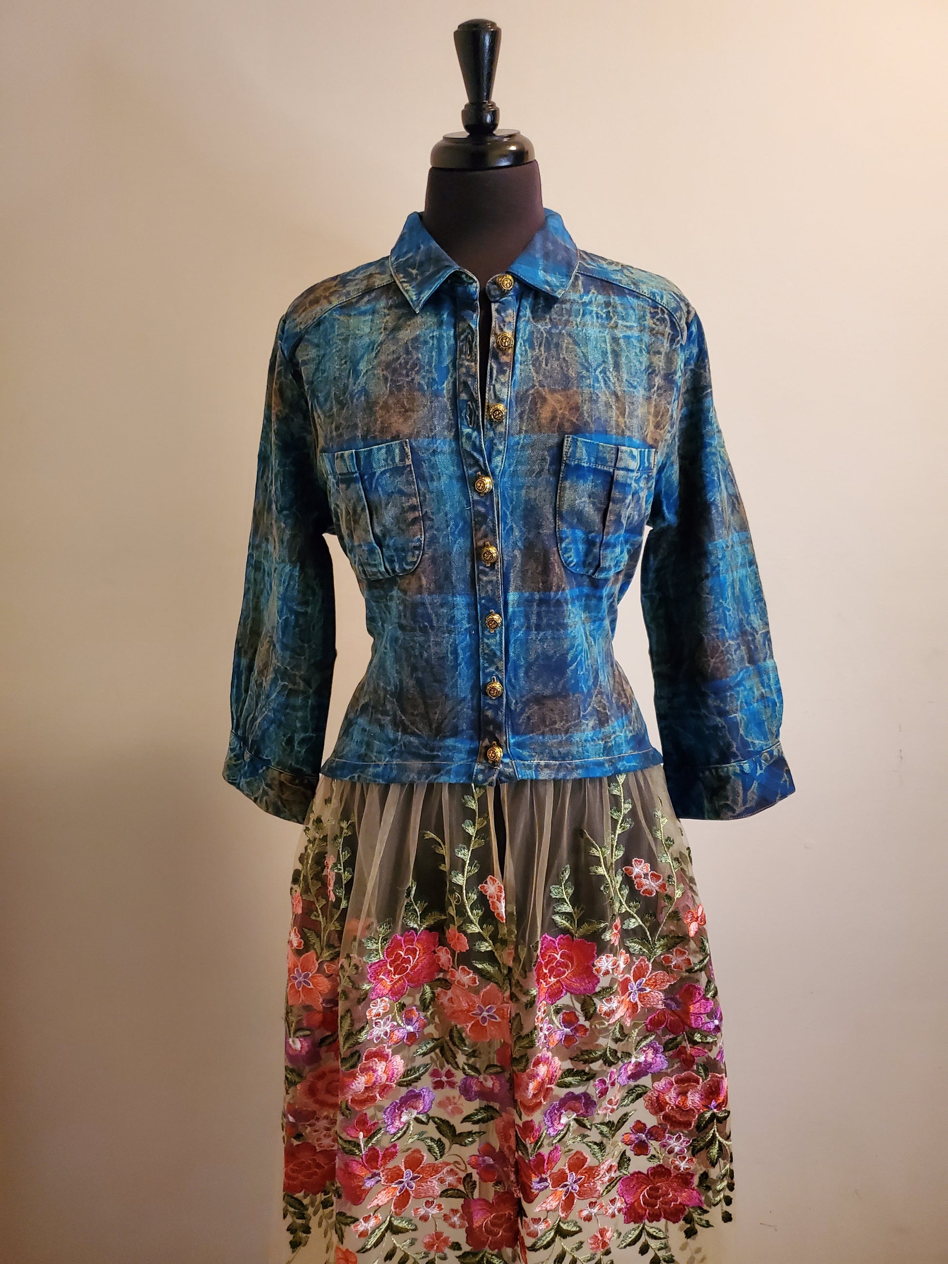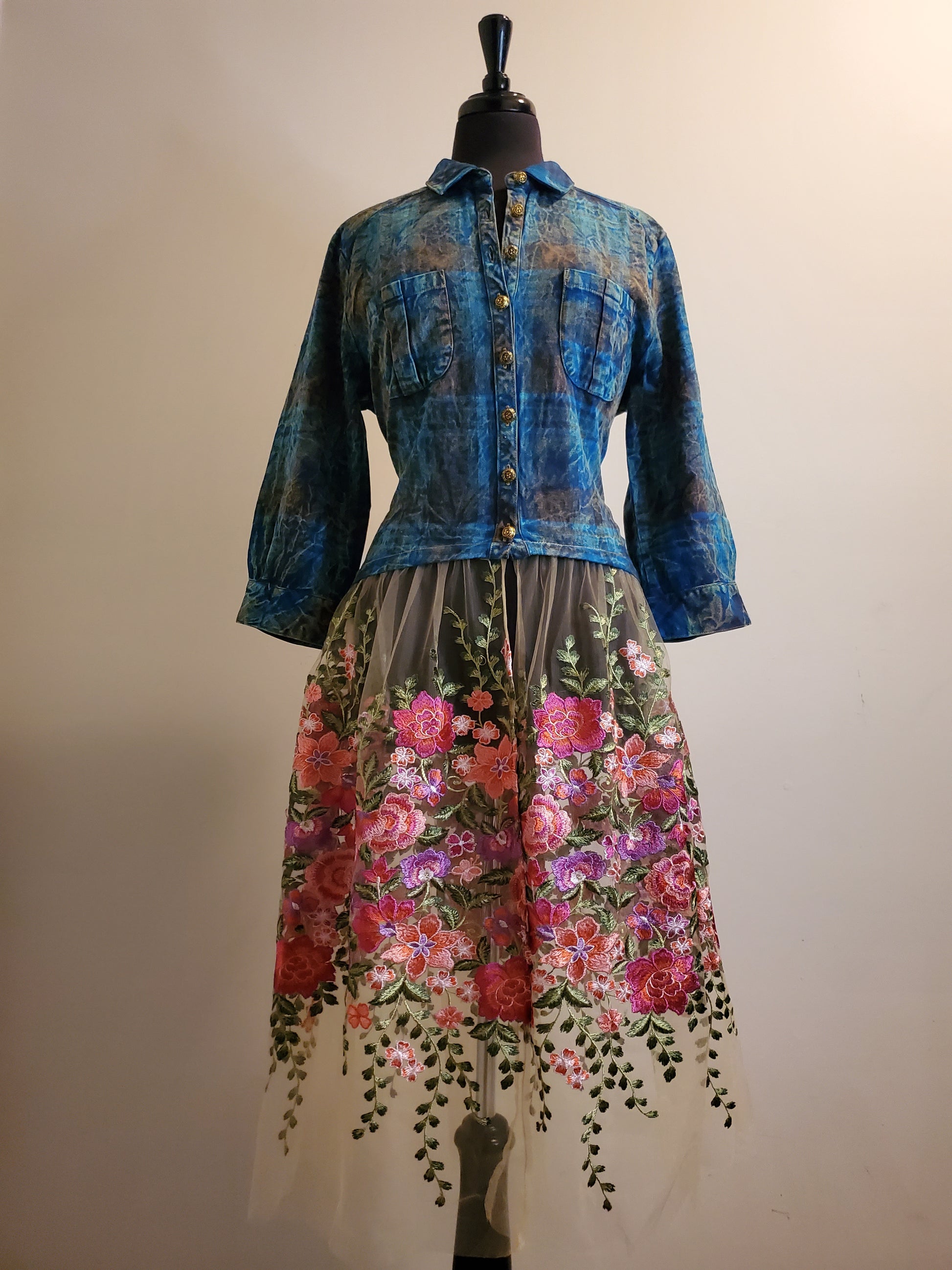 BLUE THUNDER/ FLANNEL EMBROIDERED MESH LONG