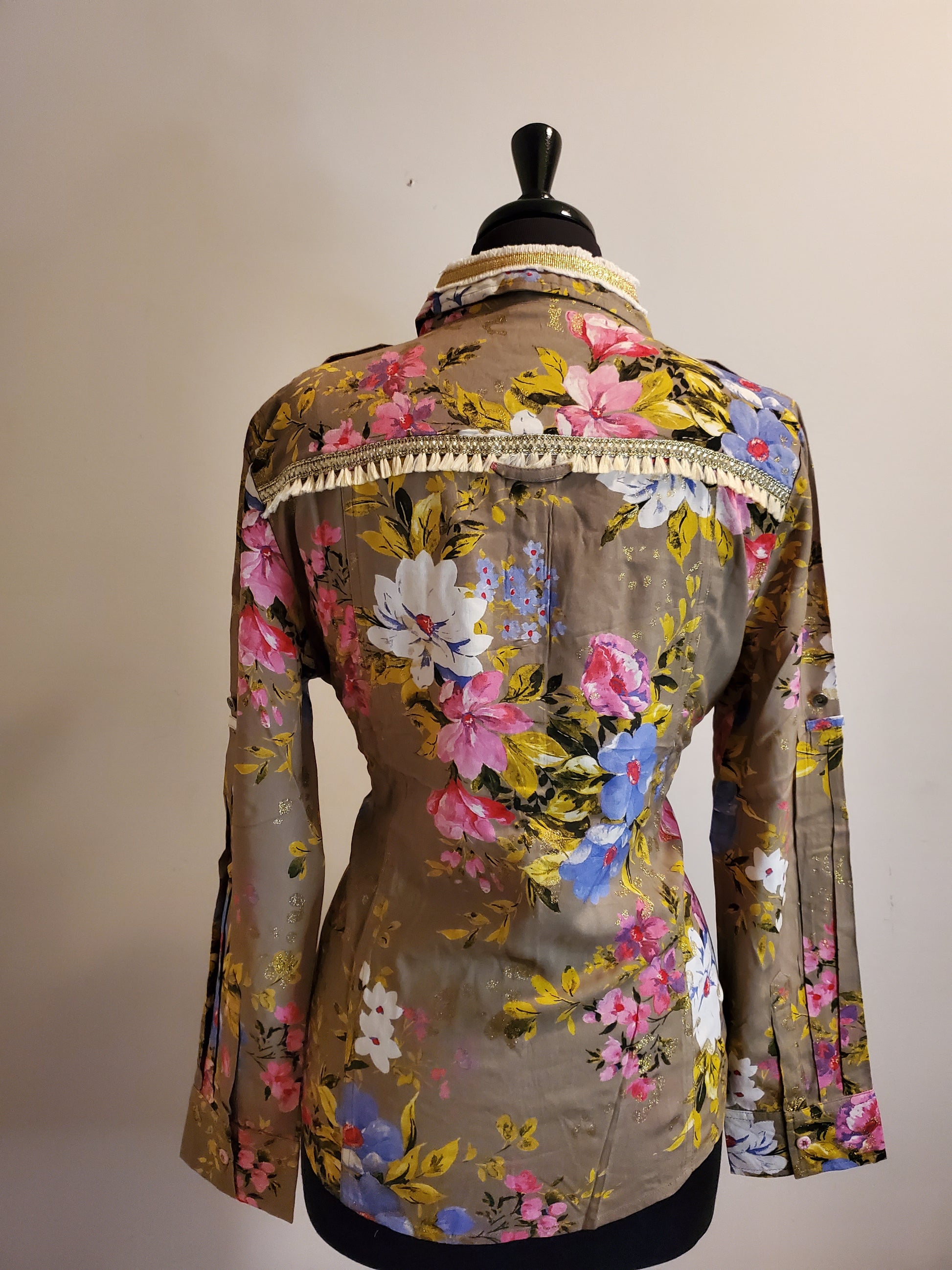 FLORAL PRINT LEOPARD GLITTER BUTTON-DOWN SHIRT WITH SPECIAL