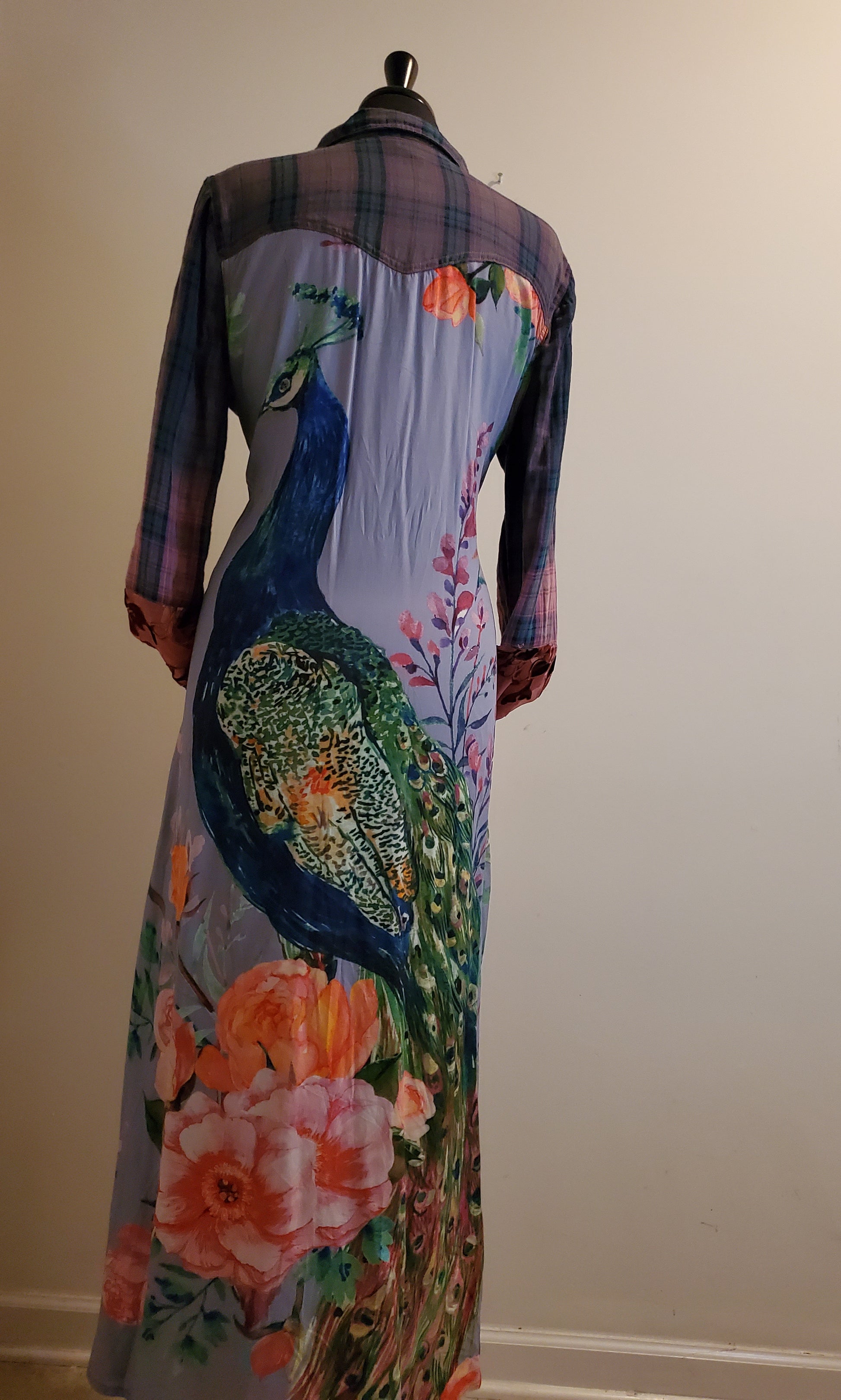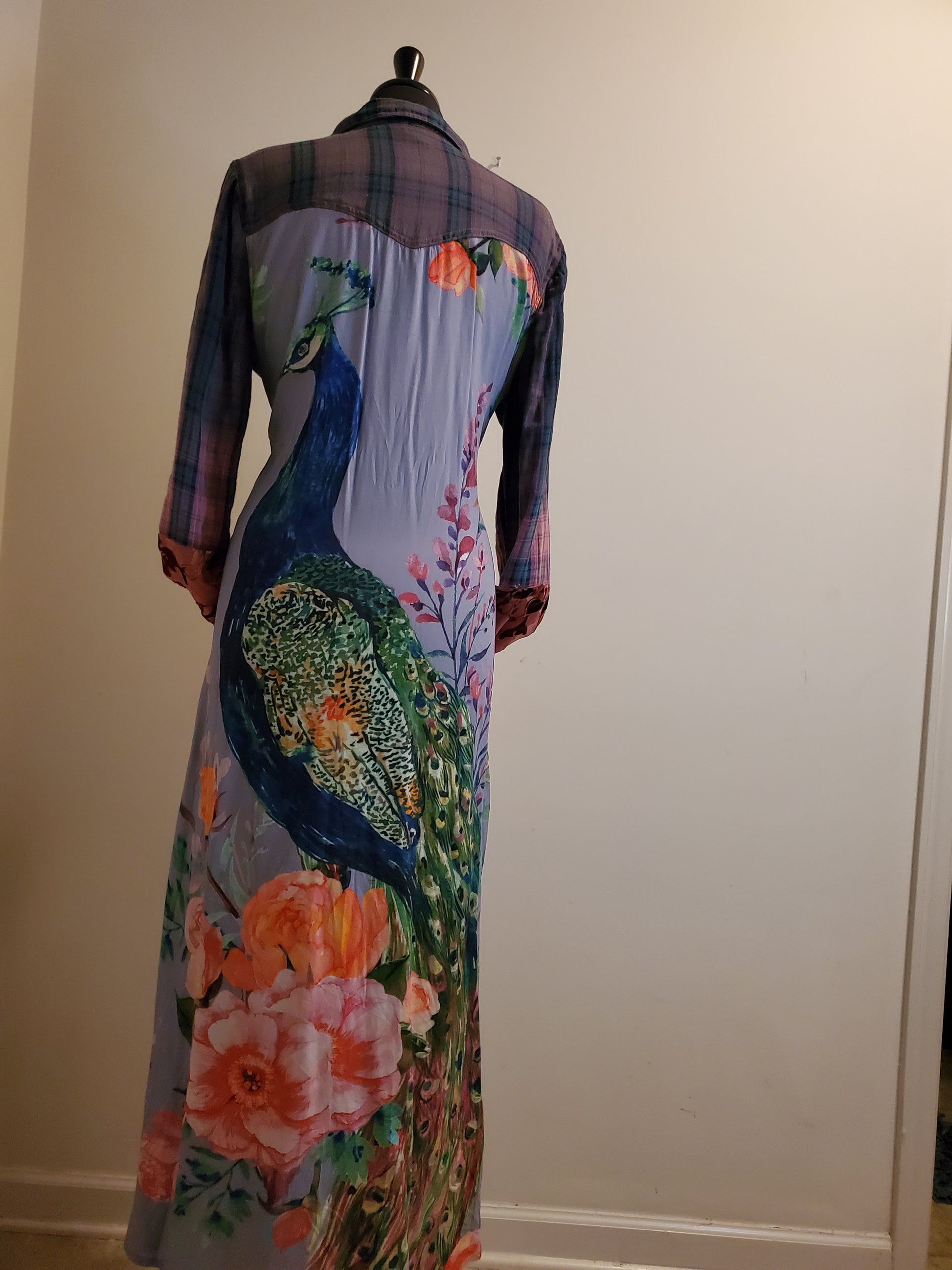 PEACOCK FLORAL PRINT ON BACK,