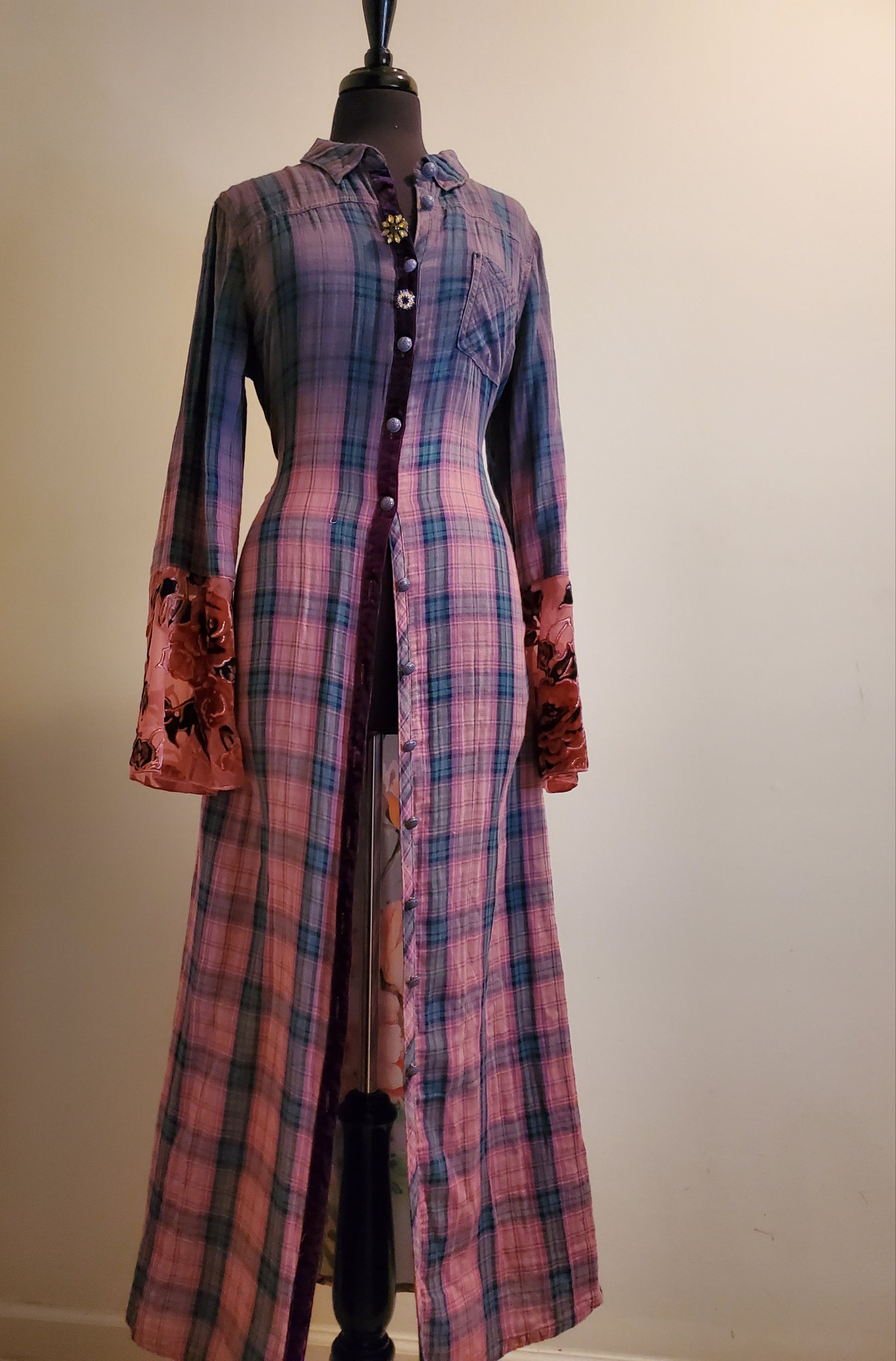 WASHED PLAID DUSTER WITH