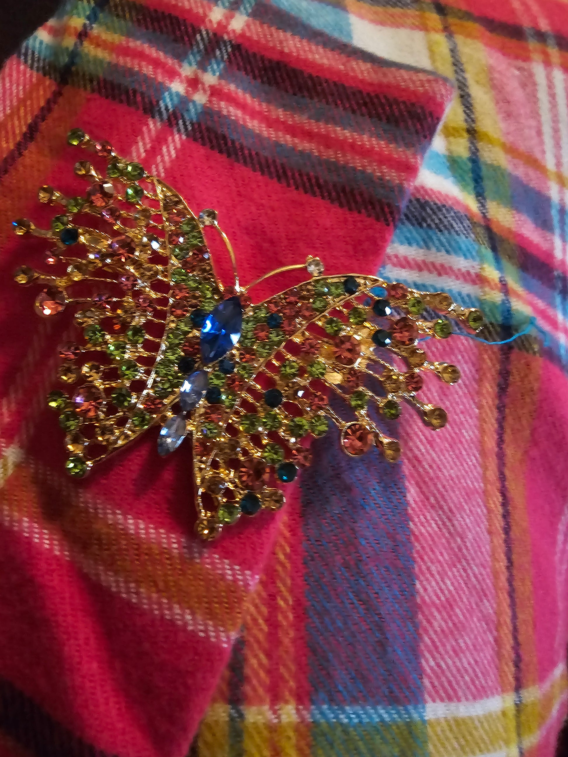 : PLAID BUTTON-UP BLAZER WITH CRYSTAL BUTTERFLY