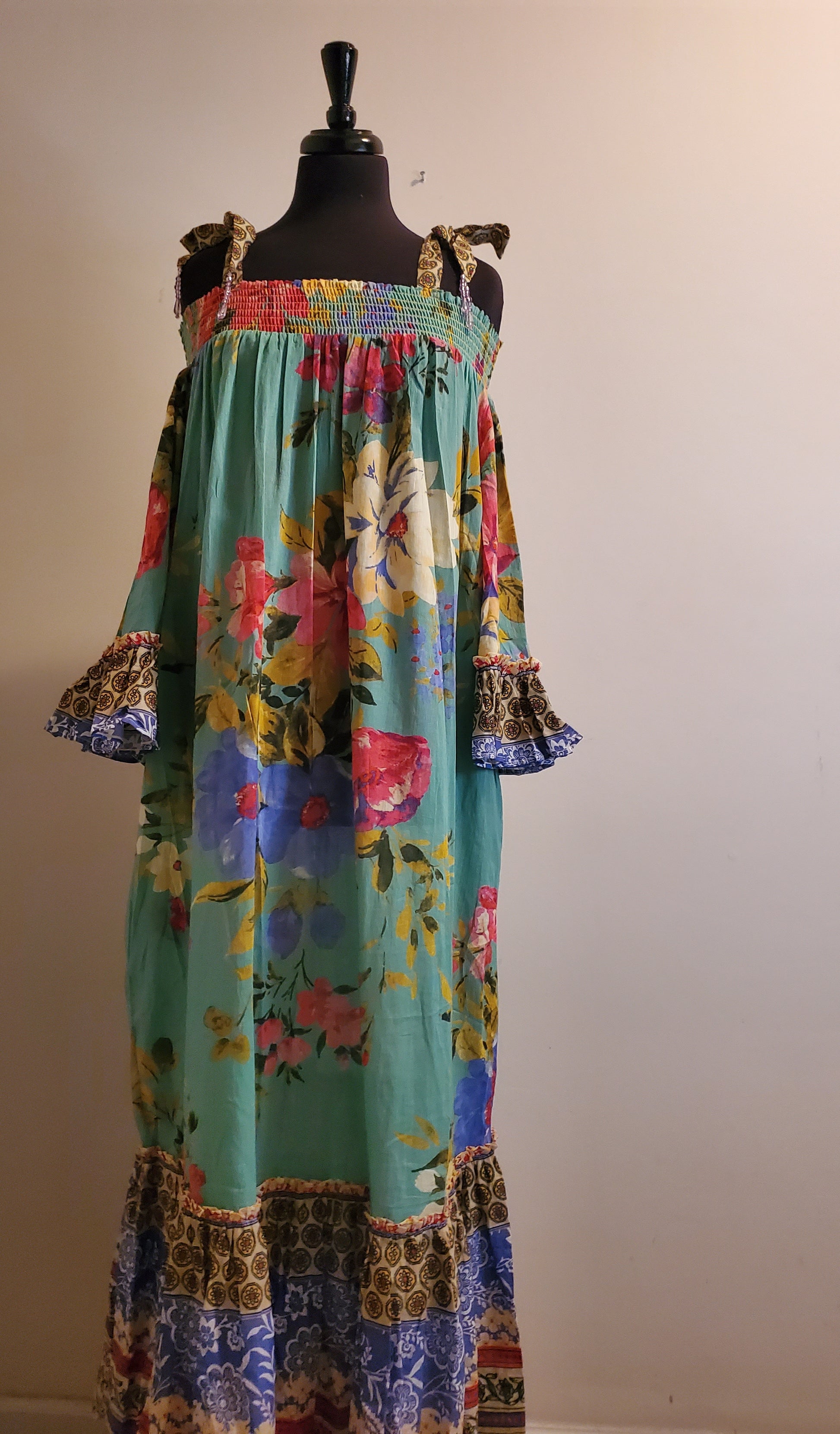 TASSELS ATTACHED TO BOTH ENDS OF THE TIES, SMOCKING NECKLINE