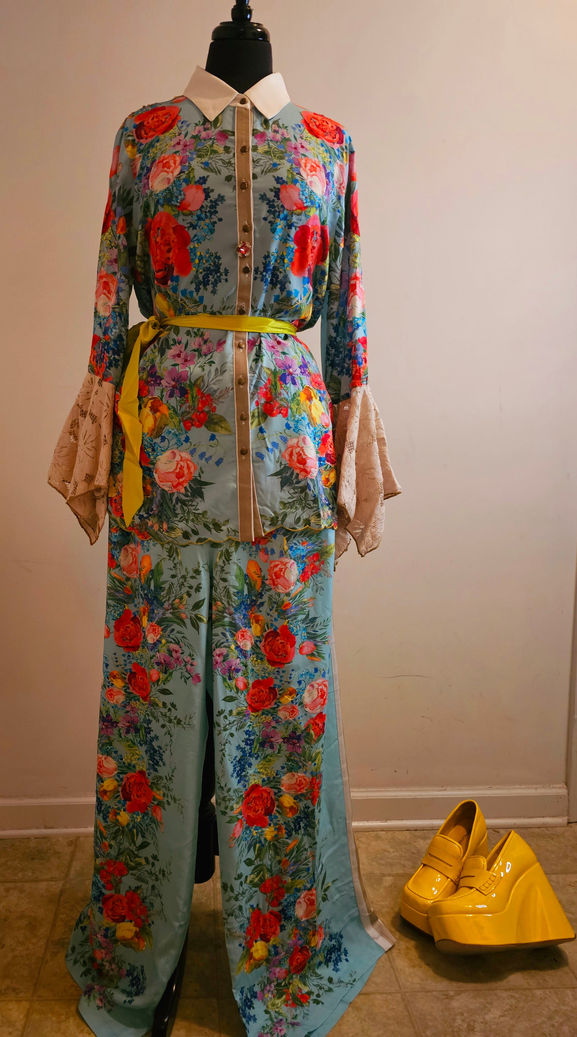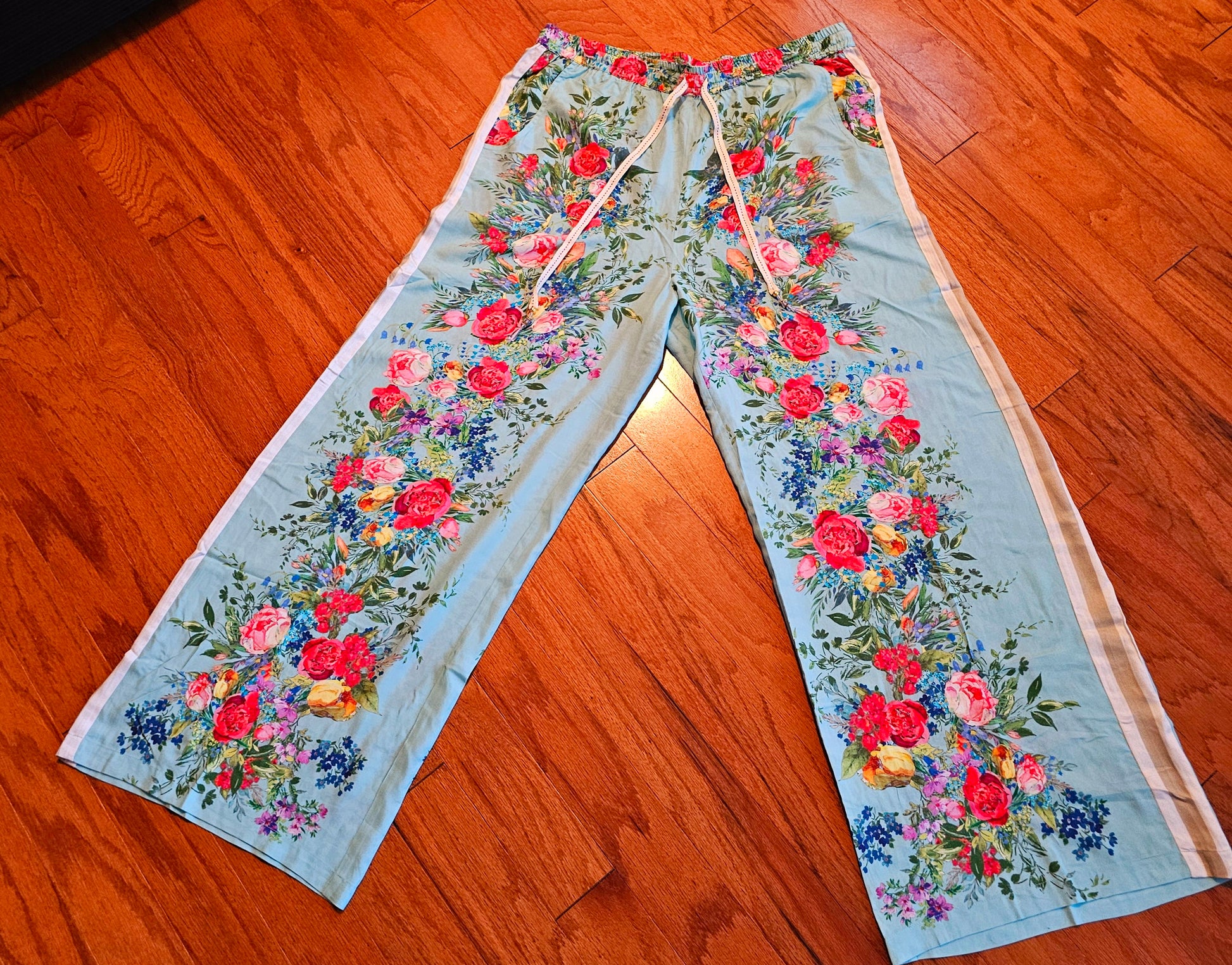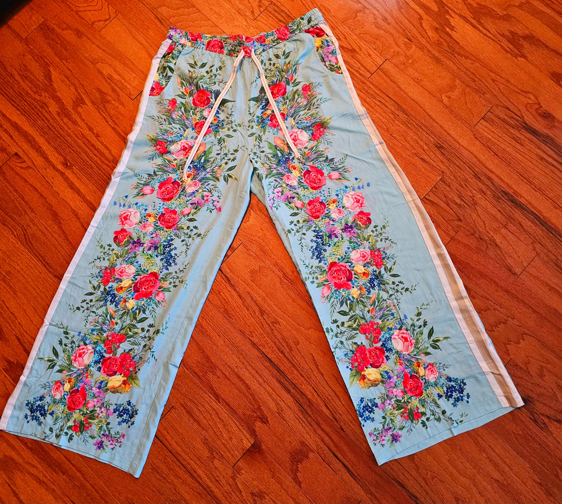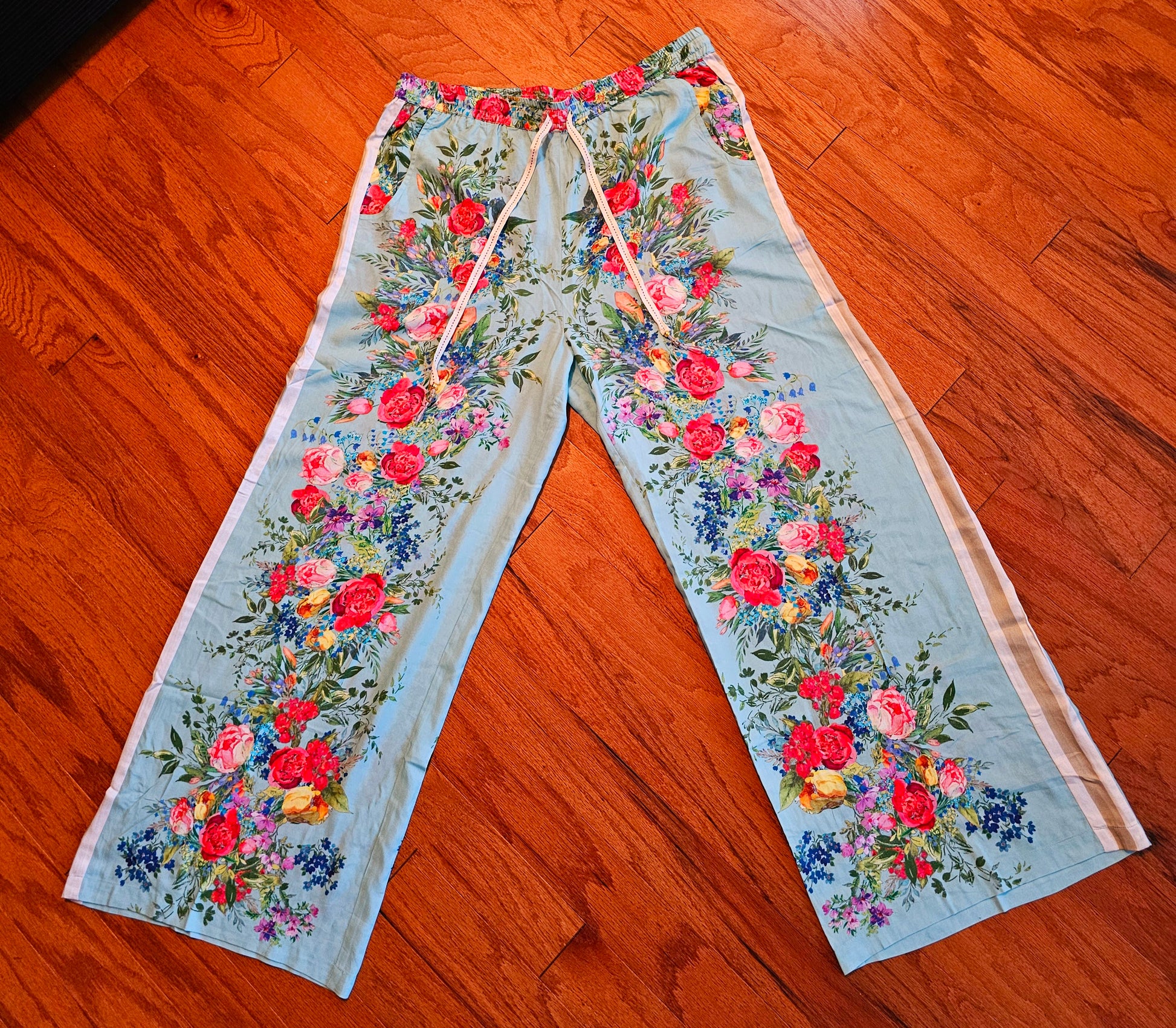 FLORAL PRINT WIDELEG ELASTIC WAIST PANTS WITH