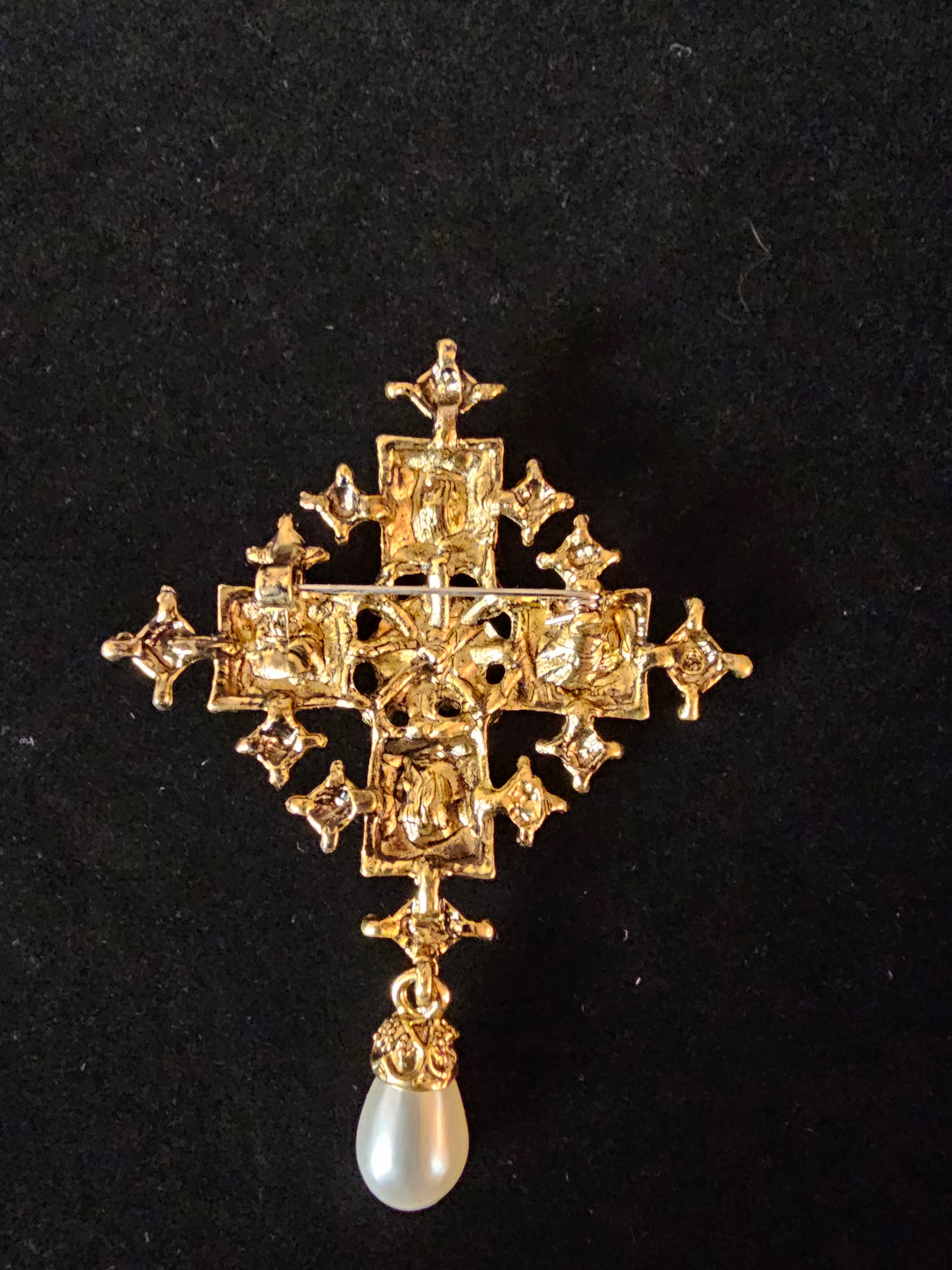 RHINESTONE PEARL BRASS METAL PIN