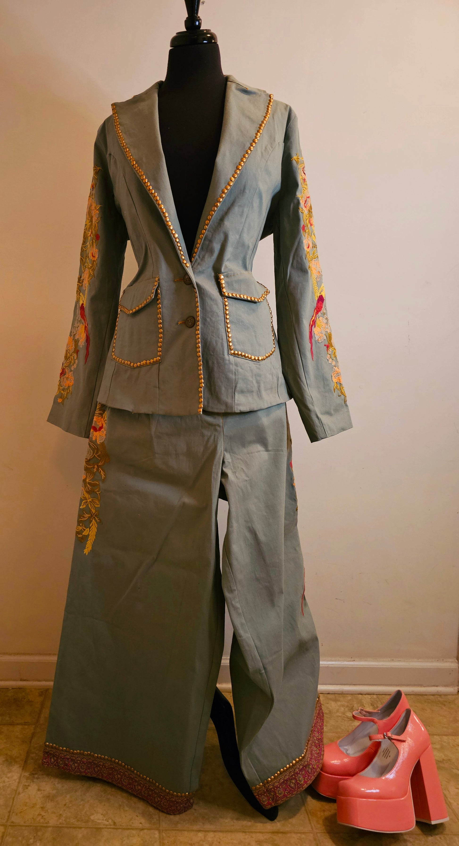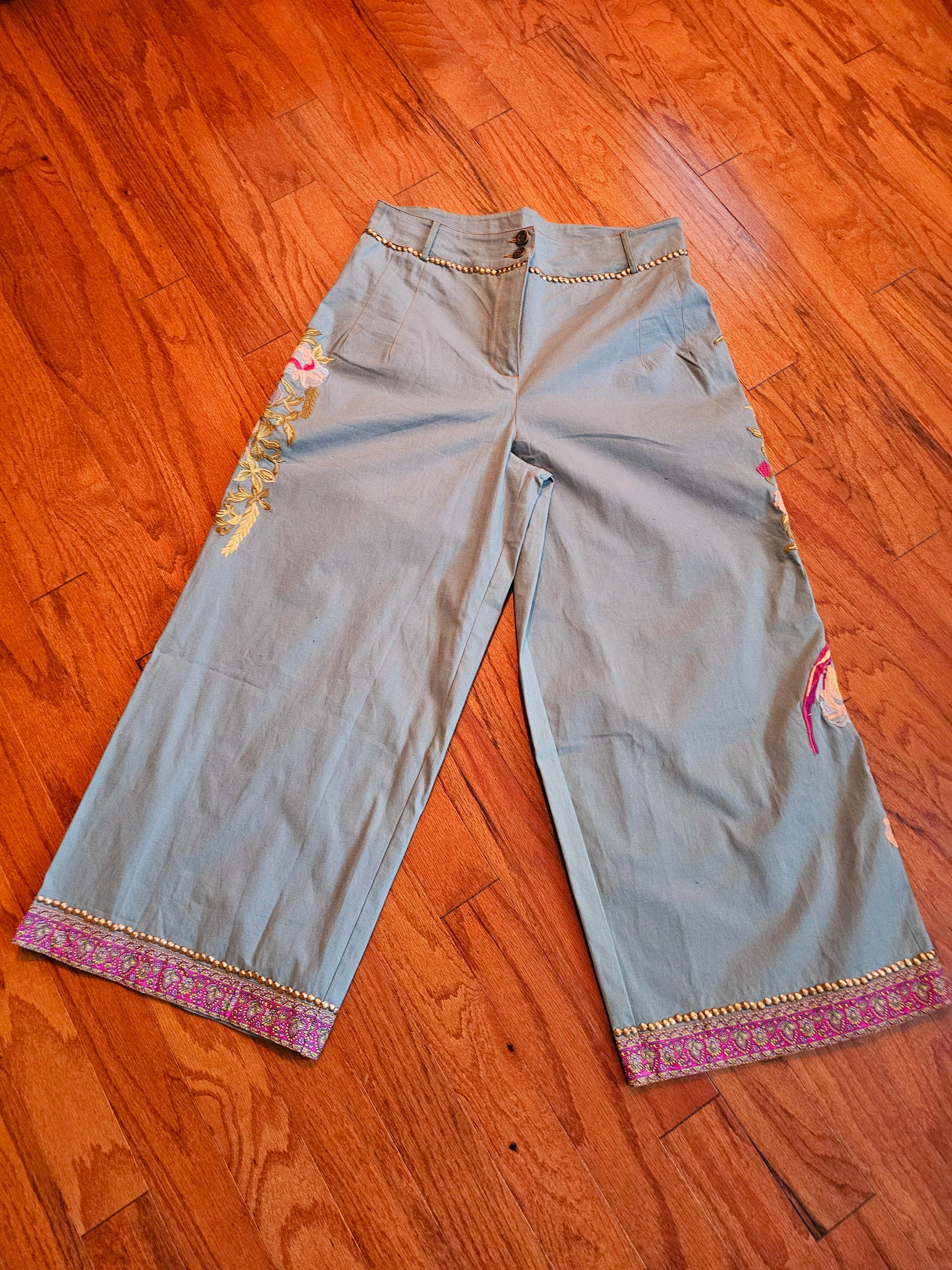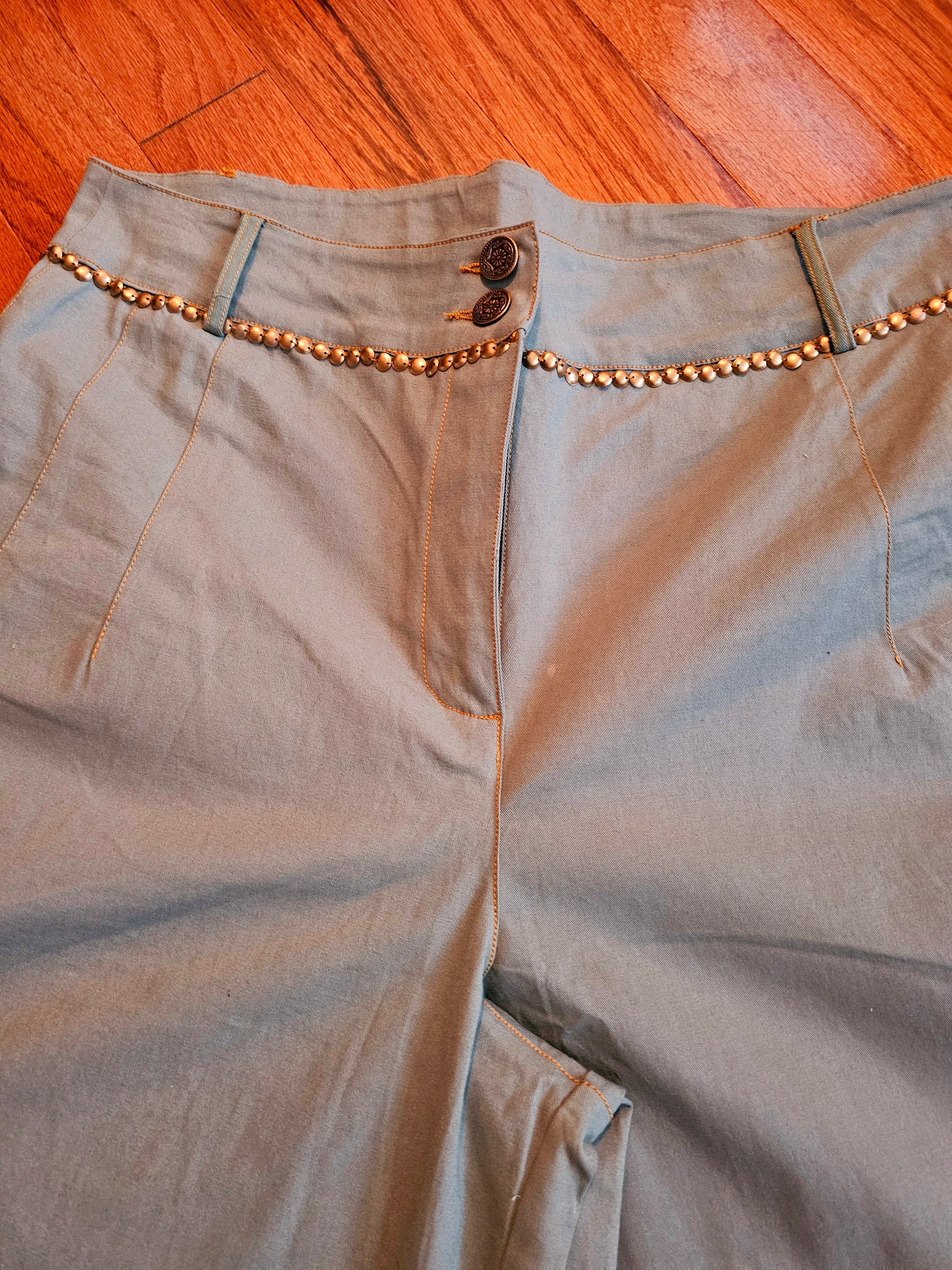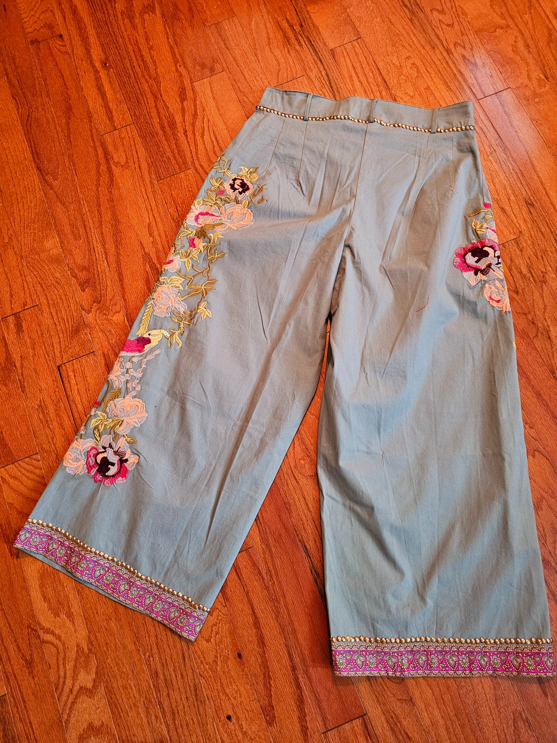 EMBROIDERED & STUDDED WASHED DENIM PANTS