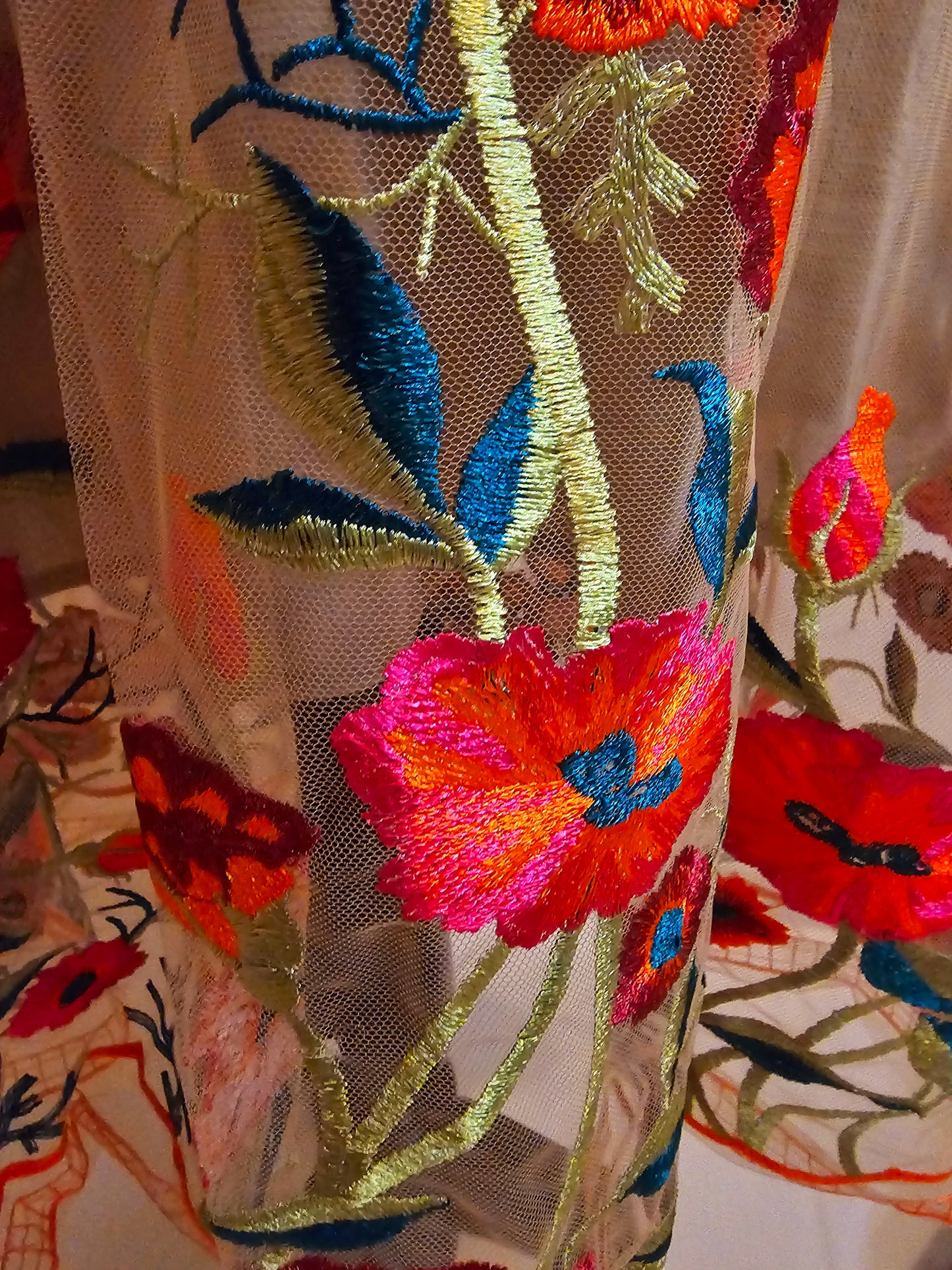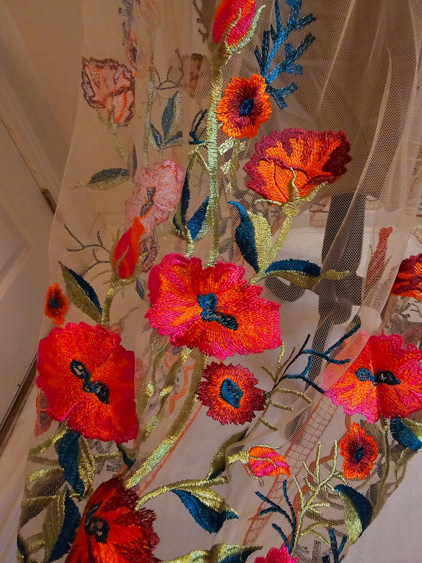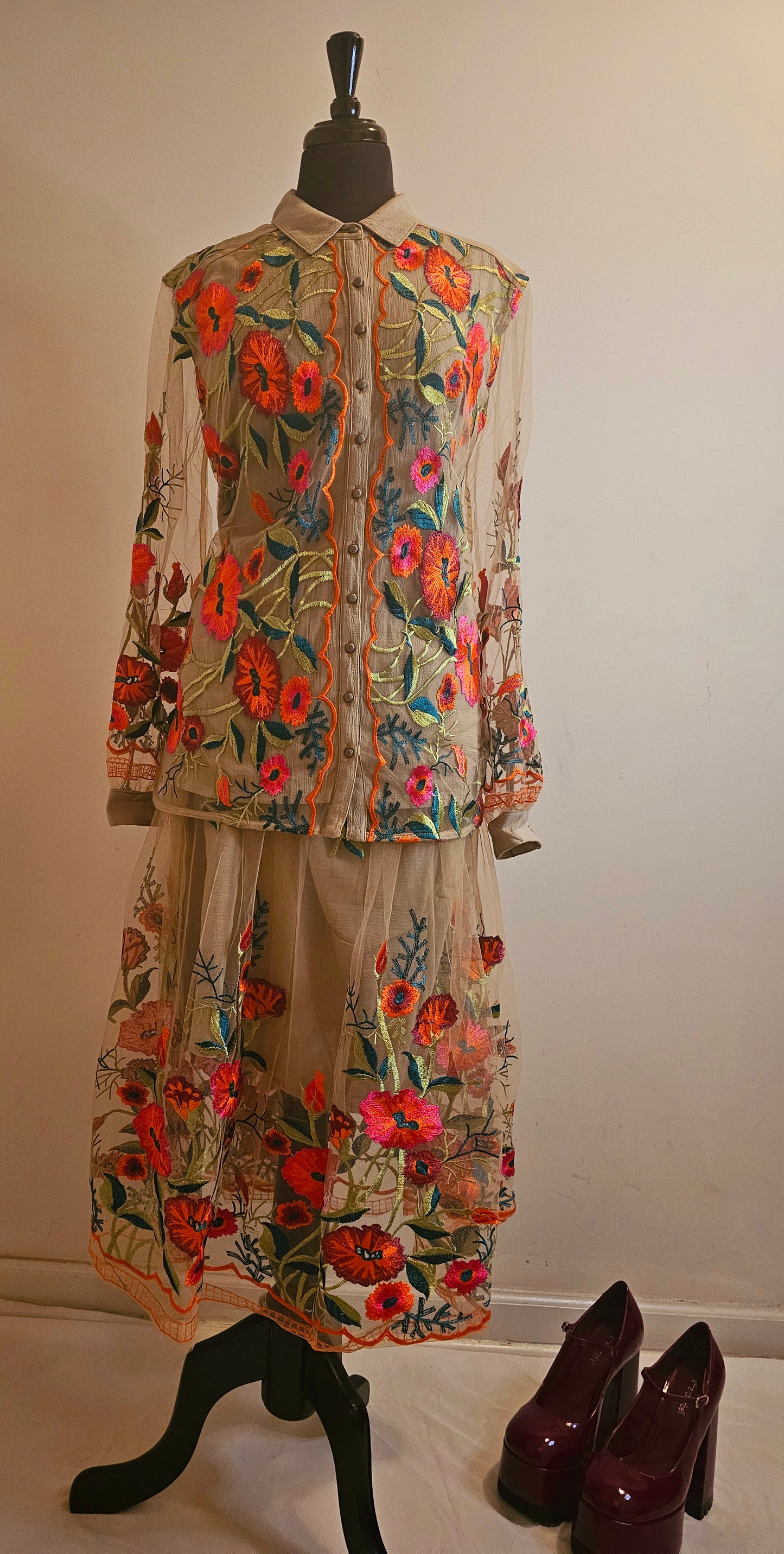 FLORAL EMBROIDERED MESH ELASTIC WAIST LINED